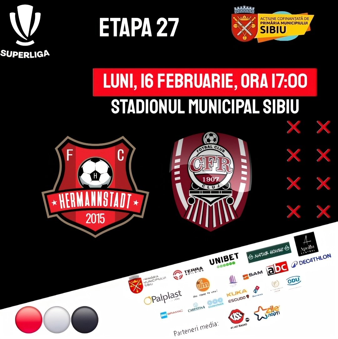 Bilete la Superliga - Etapa 27 - F.C.Hermannstadt - CFR 1907 Cluj - 16 feb 2026