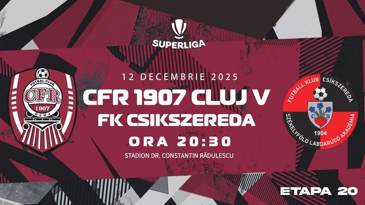 Bilete la Superliga - Etapa 20 - CFR 1907 CLUJ vs FK CSIKSZEREDA - 12 dec 2025