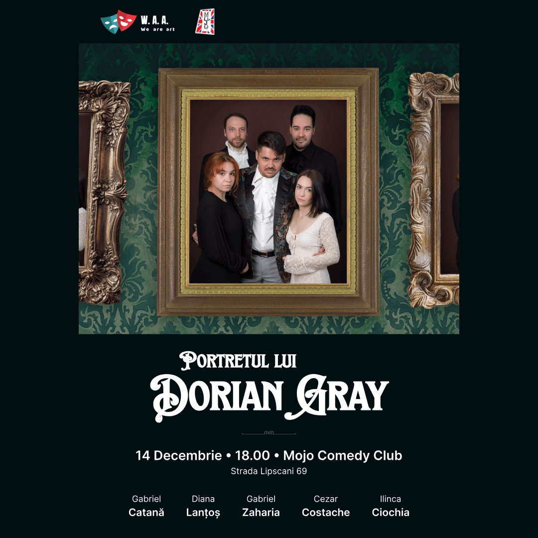 Călătoriți alături de noi de pe culmile înaltei societăți până în adâncurile depravării. De la zâmbet la lacrimă sunt tot atât de puțini paşi câți face tânărul Dorian Gray de la inocență la decadență.